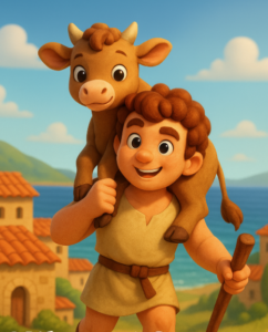 Ogni giorno Milone sollevava il vitellino e lo portava a passeggio.