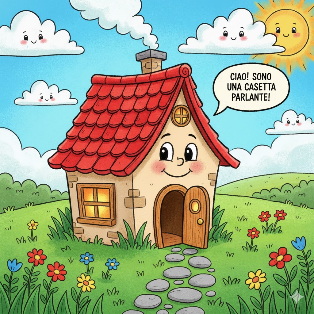 In fondo al sentiero del bosco incantato, c’era una casetta minuscola, con un tetto rosso come una mela matura e finestre rotonde come occhi di gufo. Ma la cosa più strana era la porta: una porticina di legno, un po’ storta, che sussurrava ogni volta che qualcuno si avvicinava.